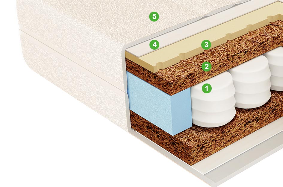 Натуральный материал, состоящий из спрессованных волокон кокосового ореха, полностью пропитанных латексом. Слои из прочной и долговечной кокосовой койры используются для придания матрасу дополнительной жесткости.