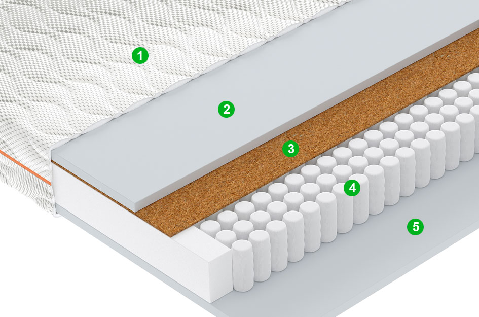 Натуральный материал, состоящий из спрессованных волокон кокосового ореха, полностью пропитанных латексом. Слои из прочной и долговечной кокосовой койры используются для придания матрасу дополнительной жесткости.