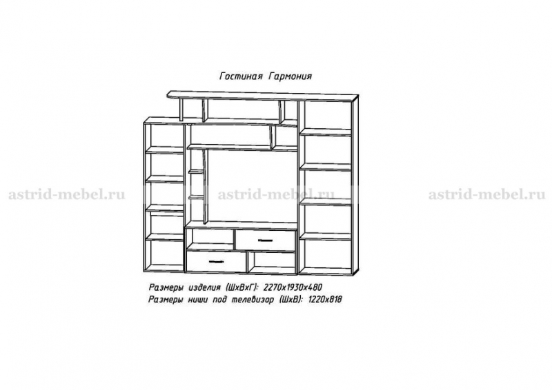 Ниша под ТВ, мм (ш х в):1036х818