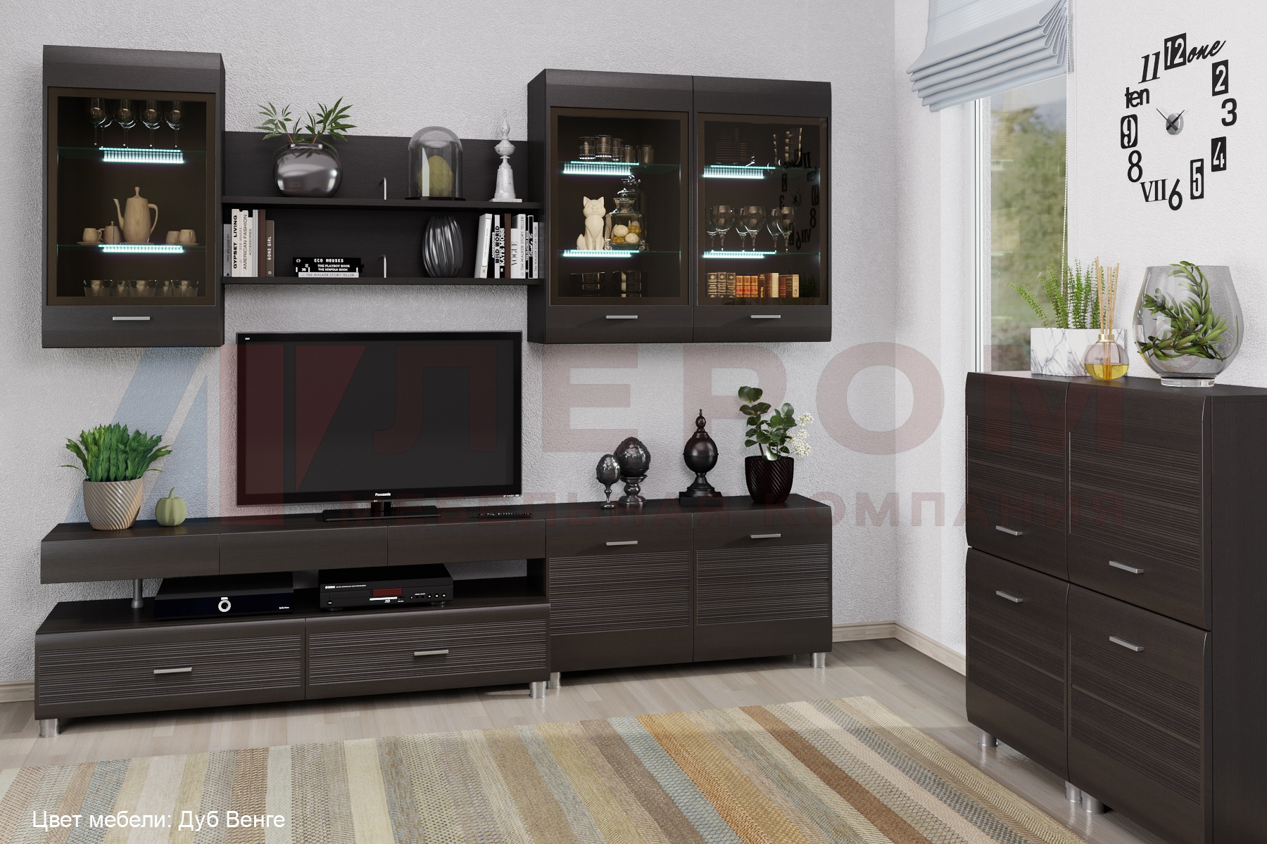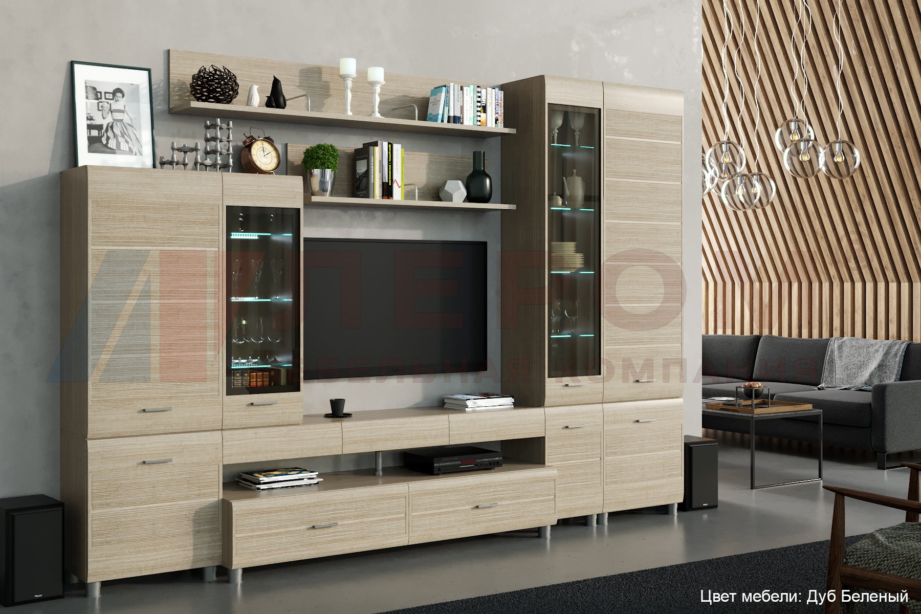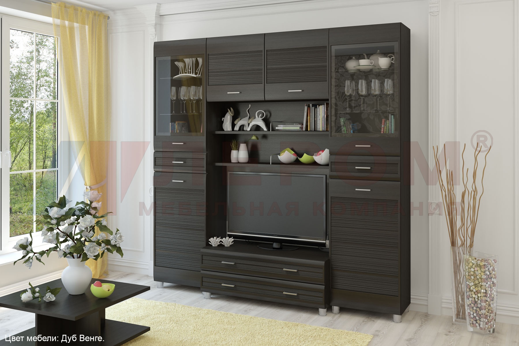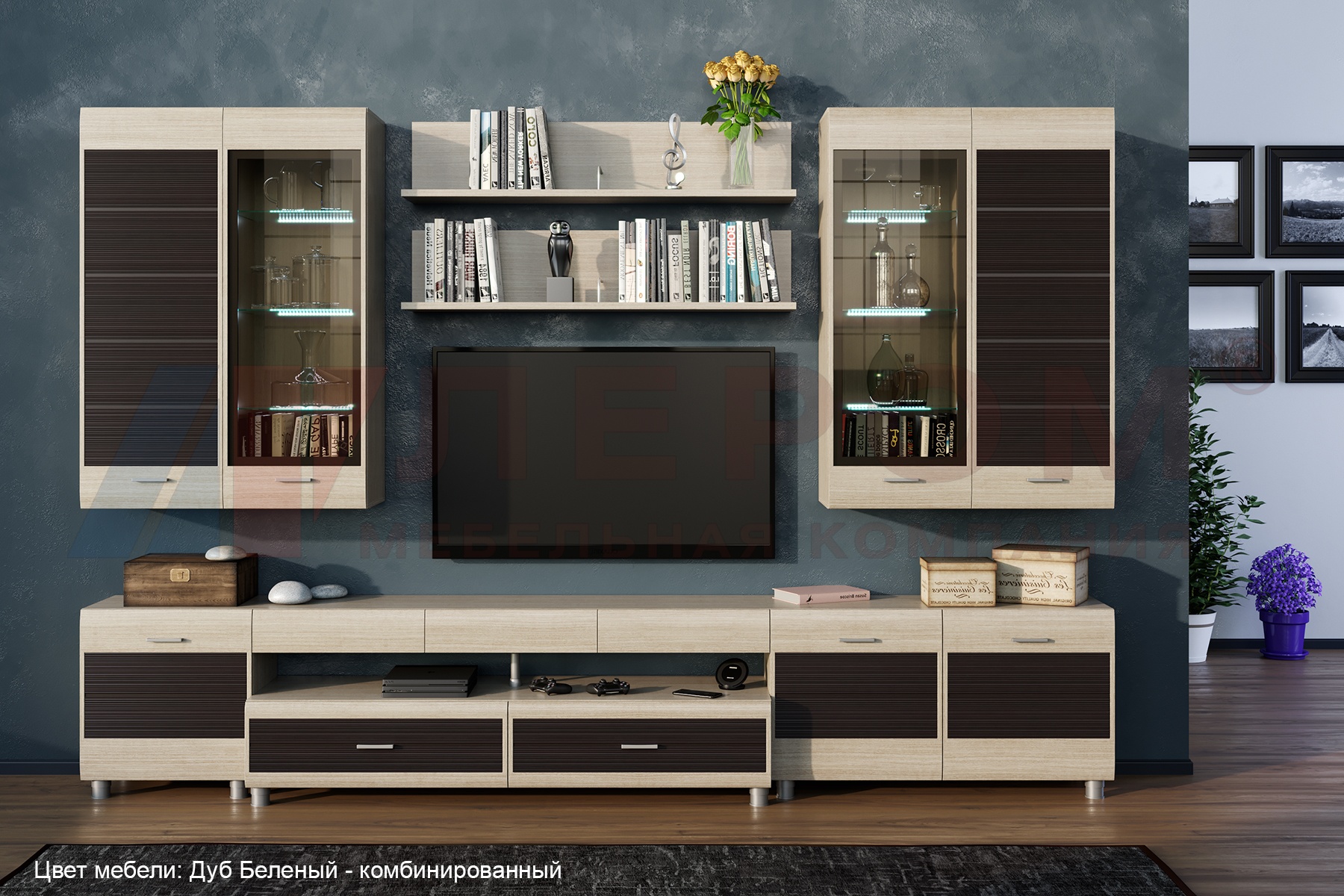 Корпусная мебель для гостиной «Камелия» — это модульная мебель. Она состоит из 42 модулей, с помощью которых можно составить огромное множество вариантов готовых композиций. Фасады с комбинированными вставками имитируют специальную технологию «браширования». Мебель изготавливается из высококачественных материалов: ЛДСП, МДФ (фасад), стекло фасадов с оттенком «бронза».