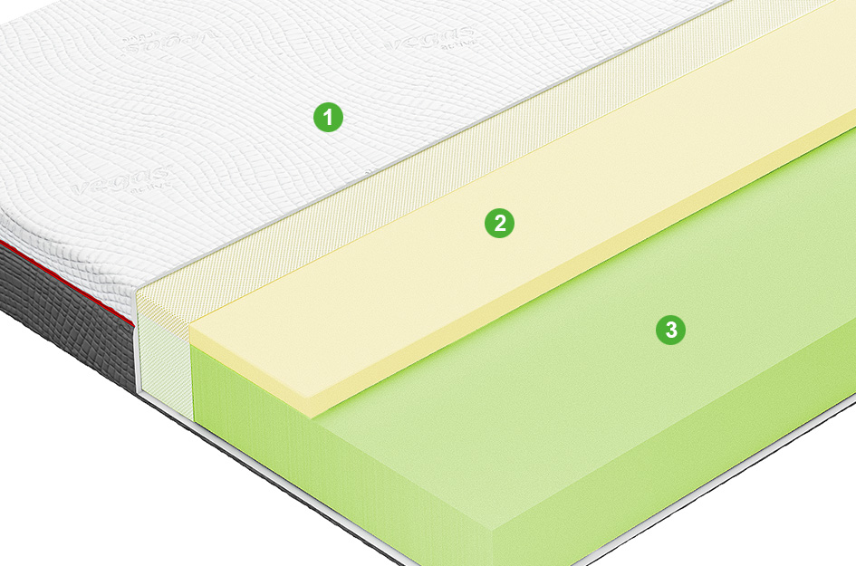 Инновационный материал с памятью формы, используемый в космической промышленности. Обладает одновременно вязкостью и эластичностью, даря спящему ощущение невесомости.