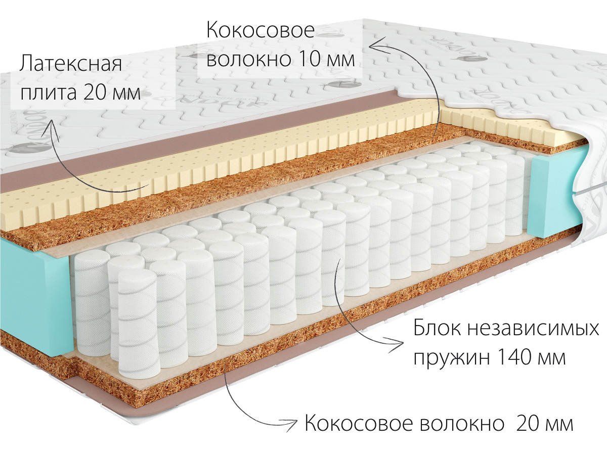 Настил матраса (верхняя сторона) Кокосовое волокно 10 мм, Латексная плита 20 мм