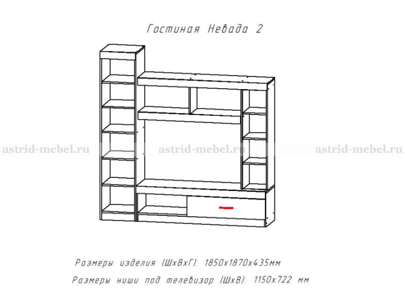 Ниша под ТВ, мм (ш х в):1150х722