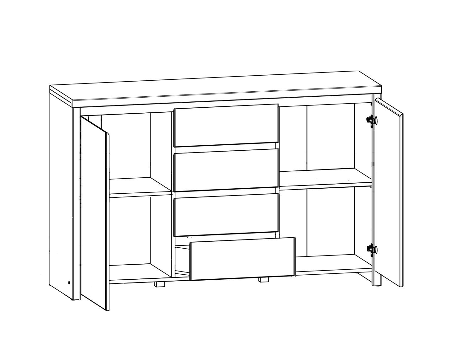 - Комбинированная тумба: отделения с полками, 4 выдвижных ящика на металлических роликовых направляющих;