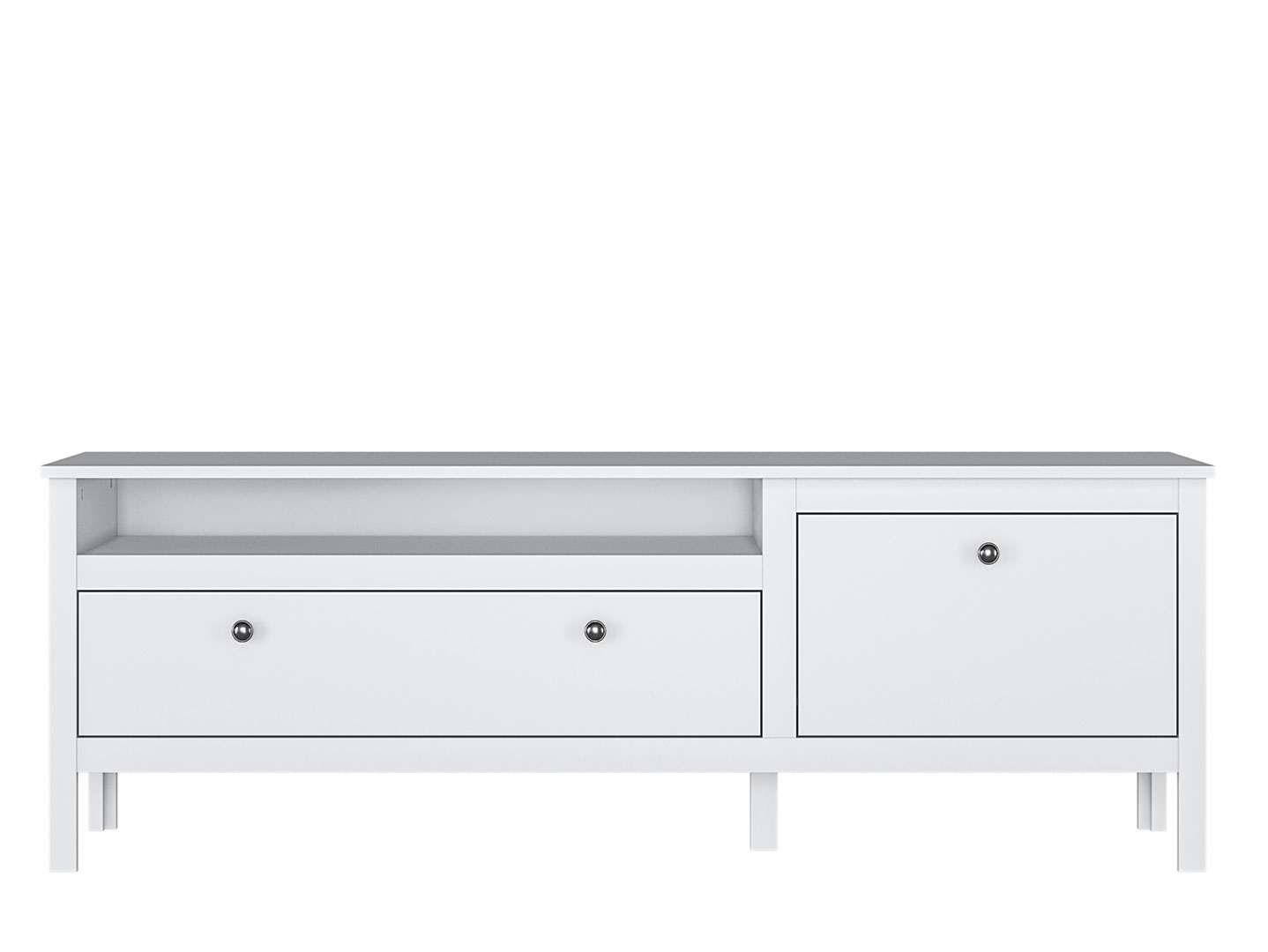 - 3 отделения: 1 выдвижной ящик на металлических направляющих, открытое отделение и отделение за распашной глухой дверью;