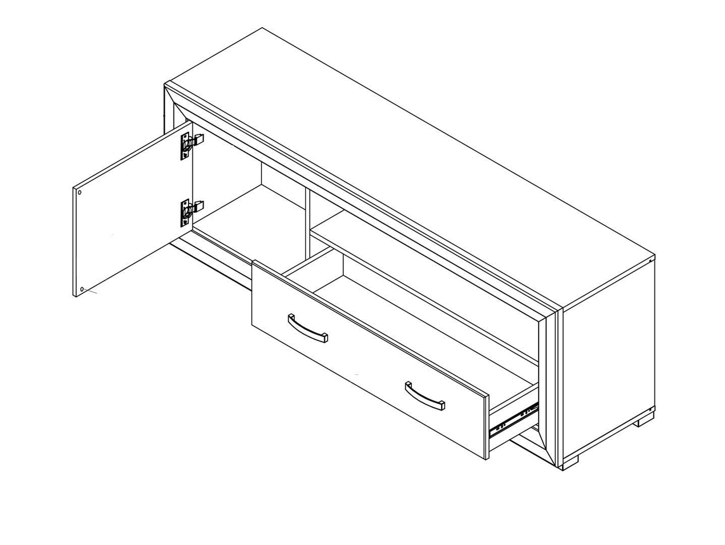 - 3 отделения: 1 выдвижной ящик на металлических направляющих, открытое отделение и отделение за распашной глухой дверью;