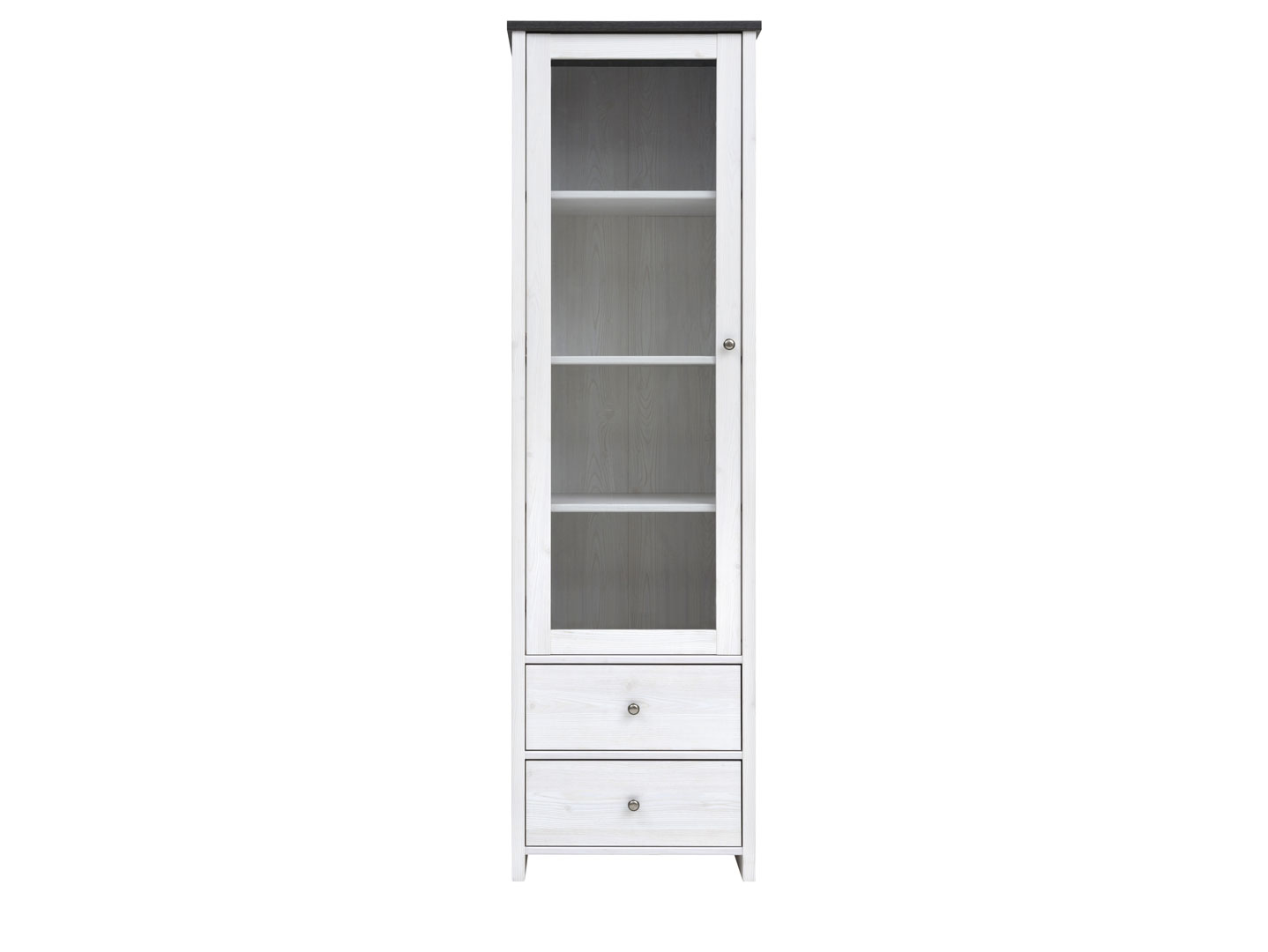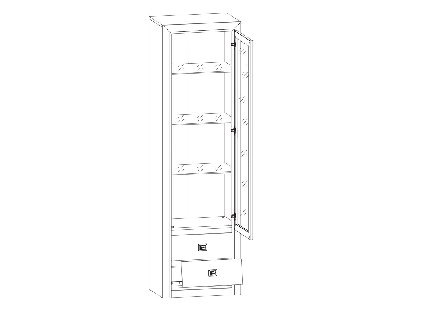 - Витрина разделена на 2 отделения: отделение с 3-мя полками за дверью со стеклянной вставкой и 2 выдвижных ящика на металлических роликовых направляющих;