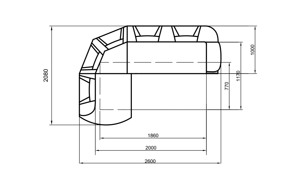 Габаритные размеры: 260 см x 208 см x 103 см