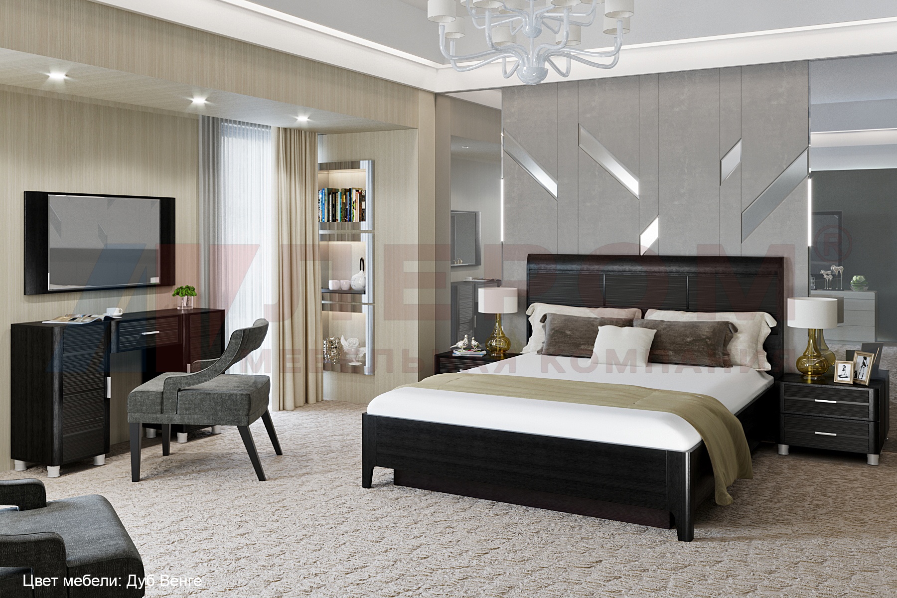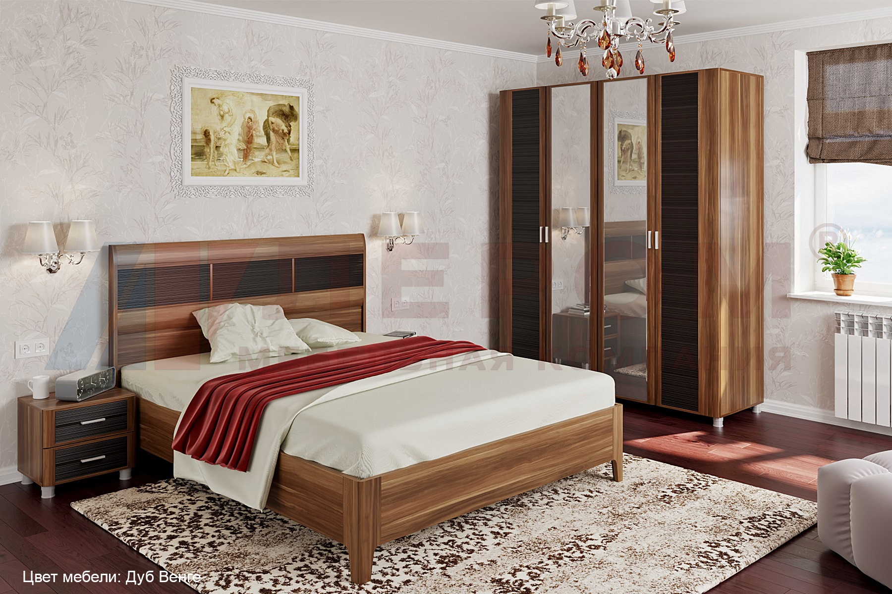 Корпусная мебель для спальни «Камелия» — это модульная мебель. Она имеет в своем составе большой выбор секций для составления шкафных модулей большой вместимости. Фасады с комбинированными вставками имитируют специальную технологию «браширования». Мебель изготавливается из высококачественных материалов: ЛДСП, МДФ (фасад), зеркала с фацетом.