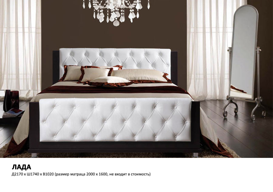 Длина кровати: 217 см Ширина кровати: 174 см Высота кровати: 102 см