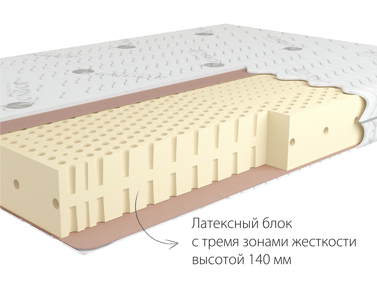 Высота матраса 15 см Жесткость (верх) Средне-жёсткий 5H Жесткость (низ) Средне-жёсткий 5H Макс. нагрузка на спальное место до 120 кг Основа матраса латексный блок, высота 140 мм Количество зон жесткости 3 Ткань матрасного чехла трикотажная, жаккардовая Срок гарантии 36 месяцев Срок службы 10 лет