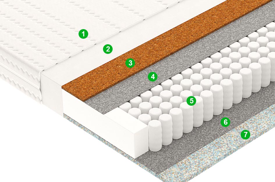 Натуральный материал, состоящий из спрессованных волокон кокосового ореха, полностью пропитанных латексом. Слои из прочной и долговечной кокосовой койры используются для придания матрасу дополнительной жесткости.