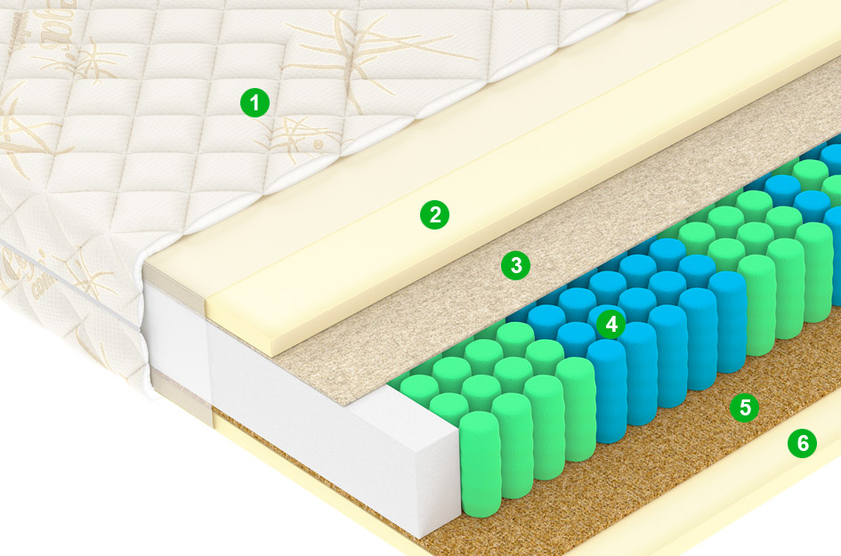 Однородный защитный слой из волокон льна, изолирует пружинный блок от мягких настилочных слоев матраса и продлевает срок их службы. Волокна льна обладают антисептическими свойствами и защищают от электростатического напряжения.