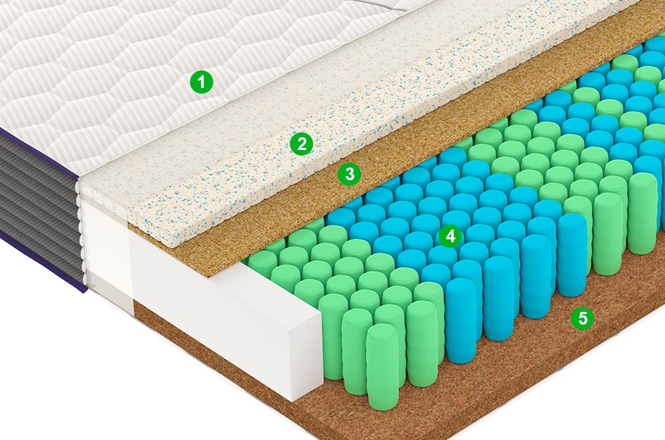 Натуральный материал, состоящий из спрессованных волокон кокосового ореха, полностью пропитанных латексом. Слои из прочной и долговечной кокосовой койры используются для придания матрасу дополнительной жесткости.