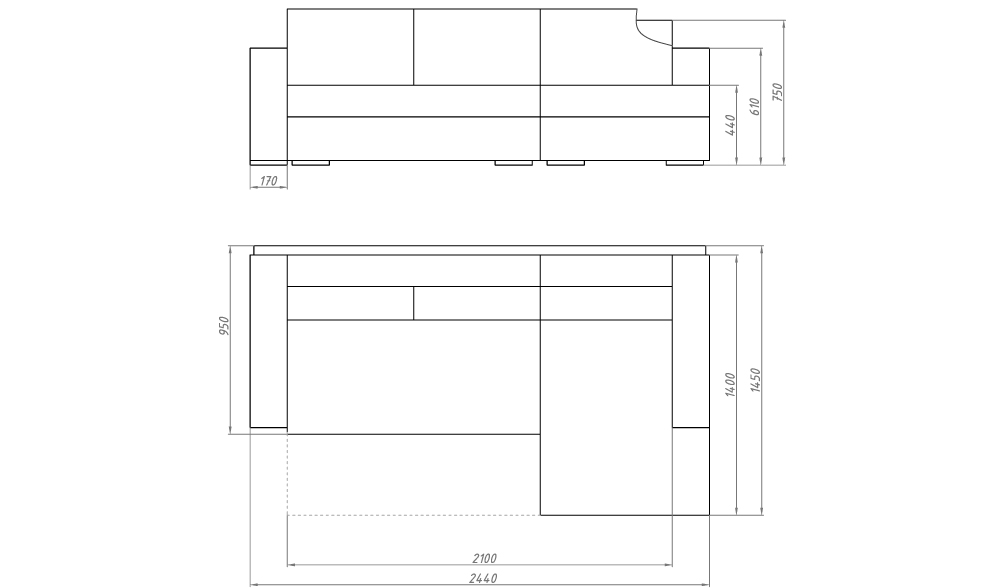 Габаритные размеры: 244 см x 145 см x 75 см