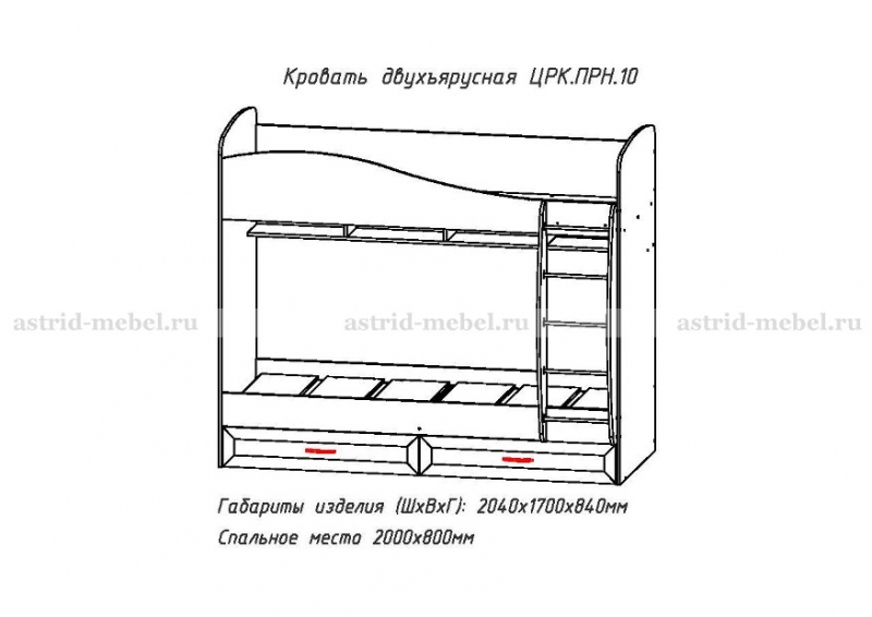 Кровать 2х-ярусная……………………………..2040х1700х1000