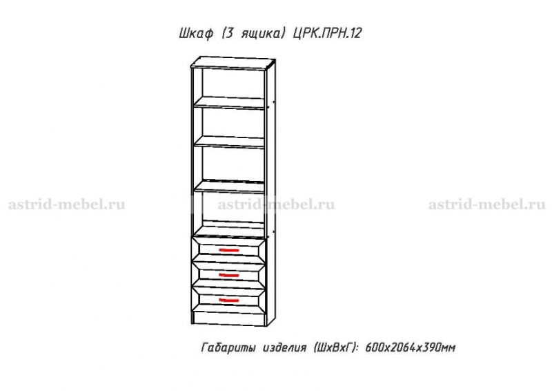 Шкаф (полки) ПРН.12…………….………………..600х2064х390