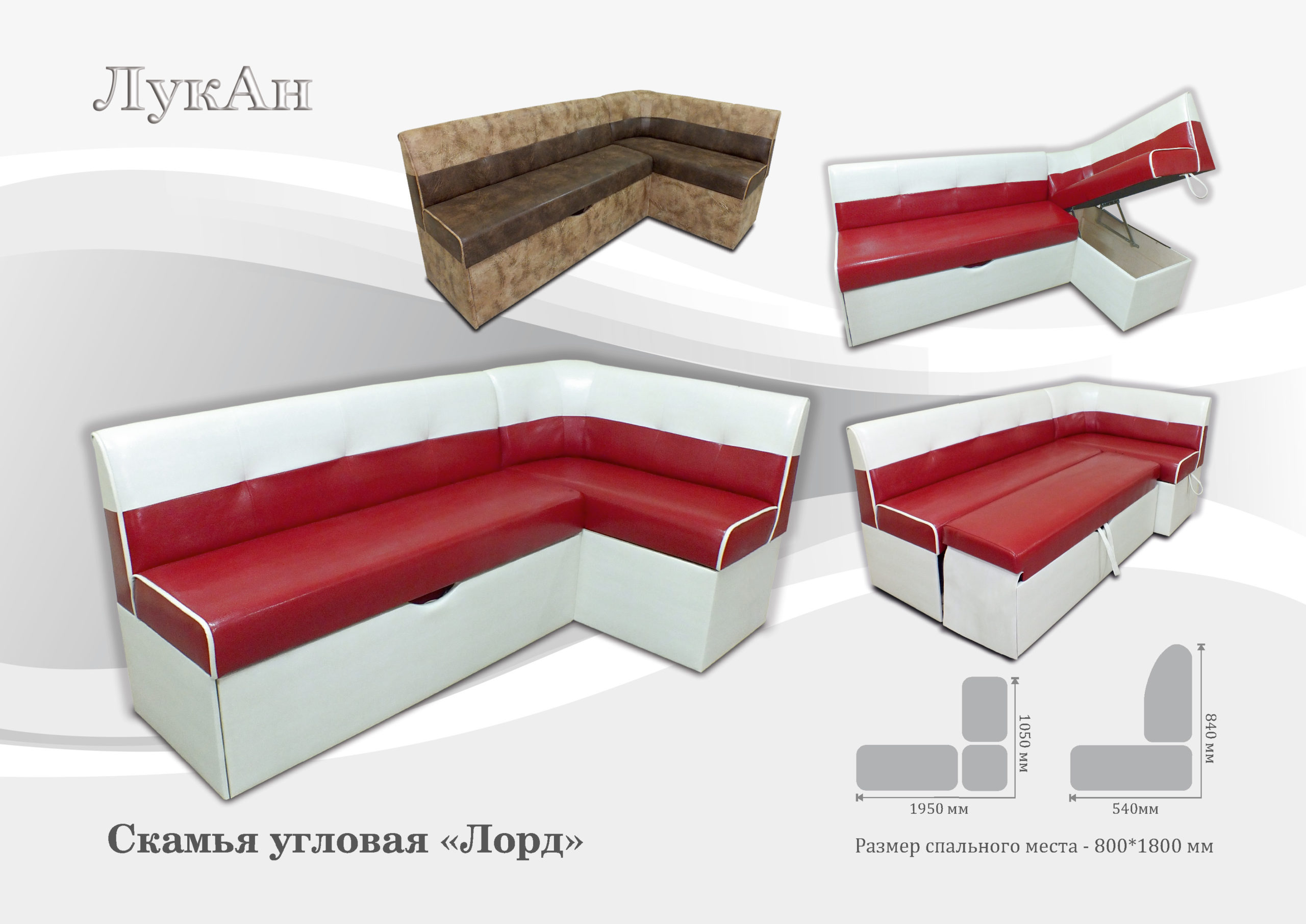 Угловые диванчики создадут на кухне эффект гостиной или столовой. А хорошим хозяевам никогда не помешает дополнительное спальное место, пусть даже и на кухне. Это неожиданное решение, которое может значительно упростить жизнь владельцам квартиры и их друзьям. В уголке скрывается спальное место, которое заменит кровать для задержавшихся допоздна гостей. Одна из таких наших моделей – скамья угловая «Лорд». Диван имеет механизм трансформации «дельфин», при помощи которого одно из сидений трансформируется в спальное место. Под вторым сиденьем расположен вместительный ящик для хранения. К данной модели возможно в комплект подобрать столы, табуреты, банкетки нашего производства. Конструктивные особенности модели позволяют выпускать скамьи разного размера с возможностью увеличения или уменьшения габаритов шагом в 10 см в любую сторону ( в рамках имеющегося размерного ряда). Глубина и высота дивана не меняются, как и ширина спального места. Длина спального места меняется пропорционально длине дивана. Рекомендуем длину дивана назначать не менее 180 см. Угловая скамья может быть выполнена в правом или левом исполнении. В стандартном варианте выкатная секция обивается тем же обивочным материалом, что и сиденья основных секций. По желанию заказчика эта секция может быть облицована подкладочной тканью. Возможно изготовление задней стенки скамьи из основного обивочного материала. В стандартном исполнении используется техническая ткань (более бюджетный вариант). Данная модель скамьи со спальным местом является «гостевым вариантом» и не предназначена для использования в качестве кровати для ежедневного сна. Приглашаем к сотрудничеству оптовых покупателей.