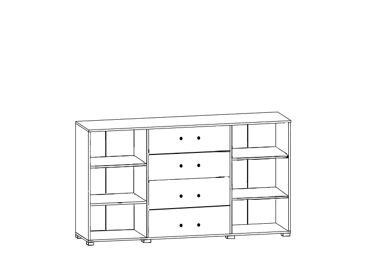 • В центральной части тумбы 4 вместительных выдвижных ящика;