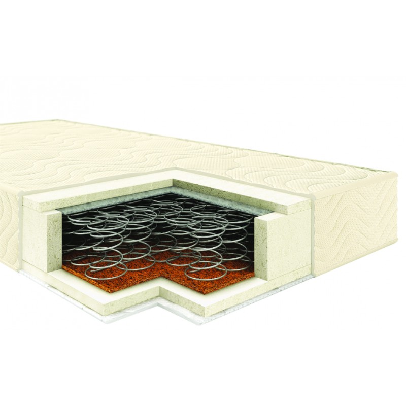 Матрас Ферст 2 отличается сбалансированными техническими характеристиками и доступной стоимостью. Внутри модели расположен блок зависимых пружин типа Bonnel, что позволяет выдерживать нагрузку до 120 кг. С одной стороны спальное место имеет среднюю жесткость благодаря слою ППУ, а с другой стороны – более высокую жесткость за счет кокосовой койры.